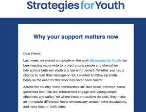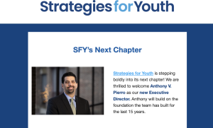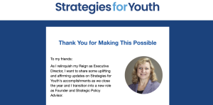 As I relinquish my Reign as Executive Director, I want to share some uplifting and affirming updates on Strategies for Youth’s accomplishments as we close the year and I transition into a new role as Founder and Strategic Policy Advisor.